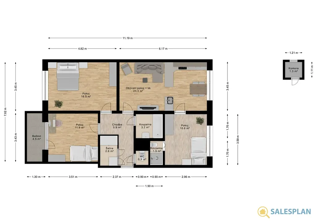 Hlavní výhody tohoto bytu jsou: