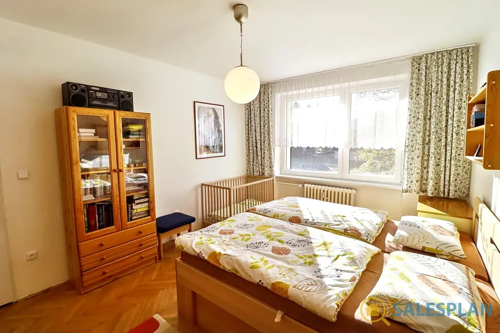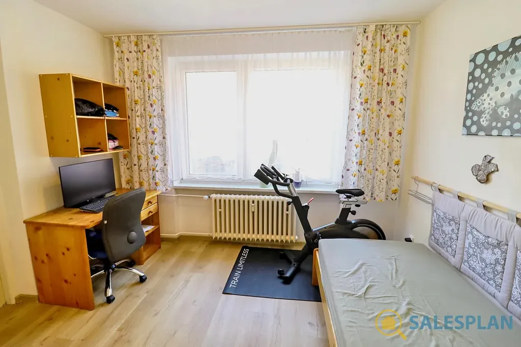 Prostorná jednotka je umístěna ve druhém nadzemním podlaží cihlového domu s výhledem do zeleně. Byt prošel v minulosti rekonstrukcí. Jeho dispoziční řešení je velmi efektivní. Skládá se z obývacího pokoje s kuchyní a tří samostatných a neprůchozích pokojů. Samozřejmostí je balkon se vstupem z jedné místnosti. Hlavní koupelna a toaleta jsou řešeny samostatně. Atraktivním a funkčním prvkem je druhá menší koupelna s toaletou. Dostatek úložných prostor poskytuje komora a šatna přístupná z centrální chodby. K jednotce náleží také komora umístěná v mezipatře.