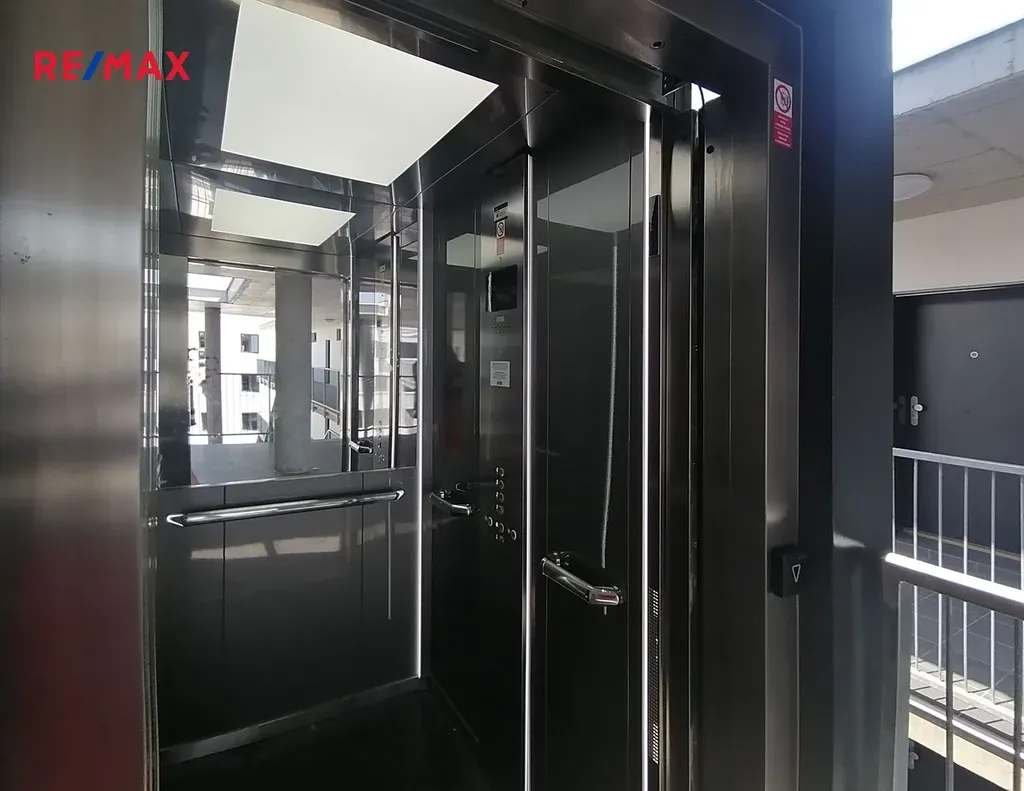 Ve společných prostorách domu je k dispozici výtah s výstupem na každé podlaží typu pavlače.