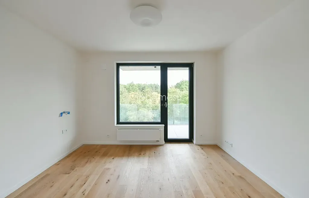 Byt je umístěn v posledním patře domu s velkou terasou, která skýtá soukromí a s další terasou u ložnice s výhledem do lesoparku. Obývací pokoj je propojen s moderní kuchyňskou linkou vybavenou kvalitními spotřebiči (el. keram. deska, lednice s mrazákem, myčka, digestoř, el. trouba, mikrovlnná trouba). 2 ložnice, 2 koupelny.