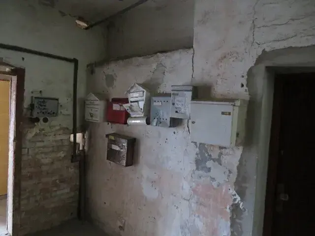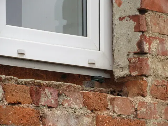 jsou plastové prosklené. Vnější omítky chybí. Fasáda domu není zateplená. Budova je v původním