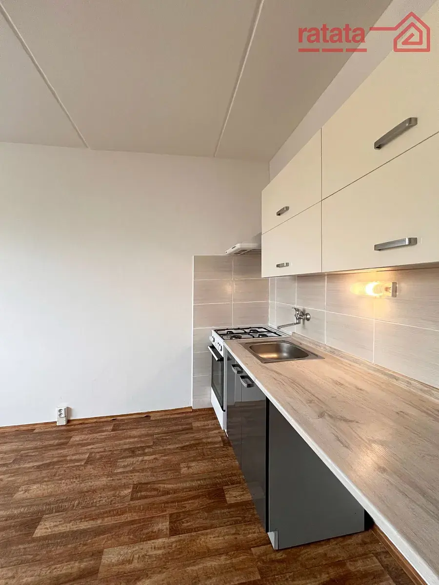 Je zde kuchyňská linka, plynový sporák, vana s umyvadlem a WC. Na podlahách je položeno lino a koberec. Byt je volný k nastěhování od 1.2.2026.