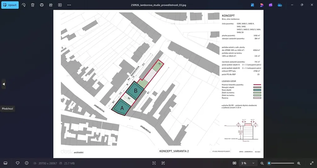 Na projekt byla vypracovaná reálná studie zastavitelnosti území.