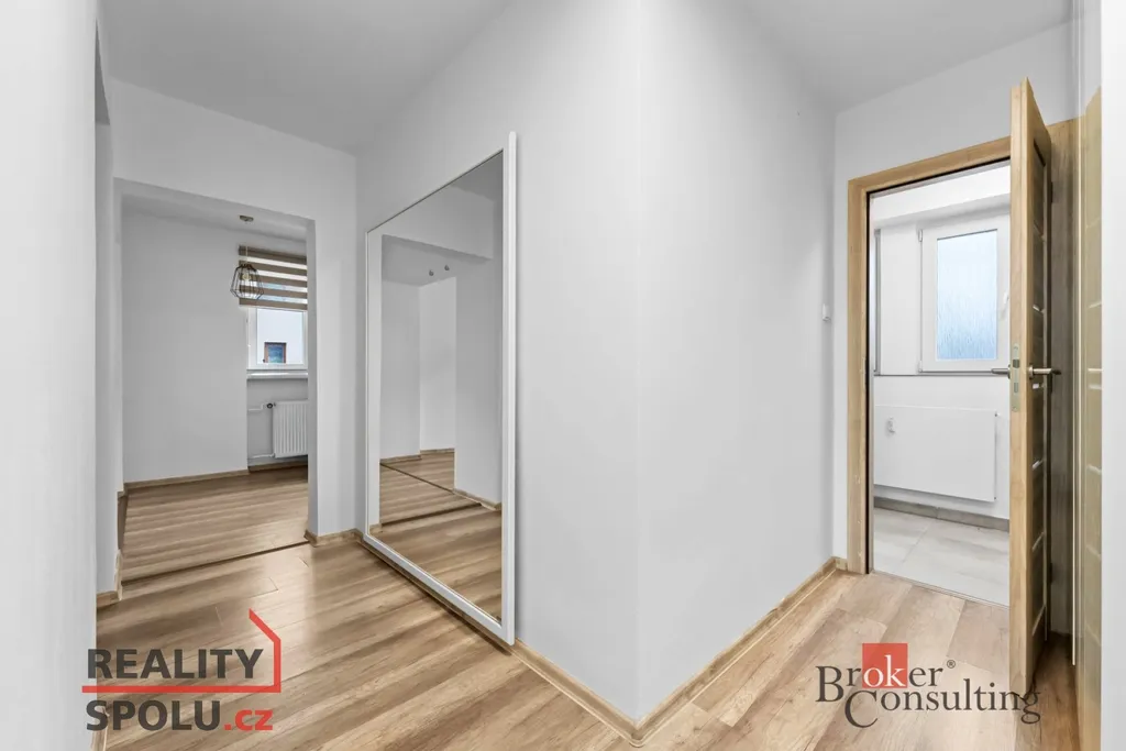 Byt prošel opravami – nové rozvody elektřiny a vody, podlahy, kuchyňská linka včetně vestavěných spotřebičů, koupelna s toaletou i interiérové dveře. Vše je vkusně sladěno do světlých tónů, takže byt působí svěže, prostorně a útulně.