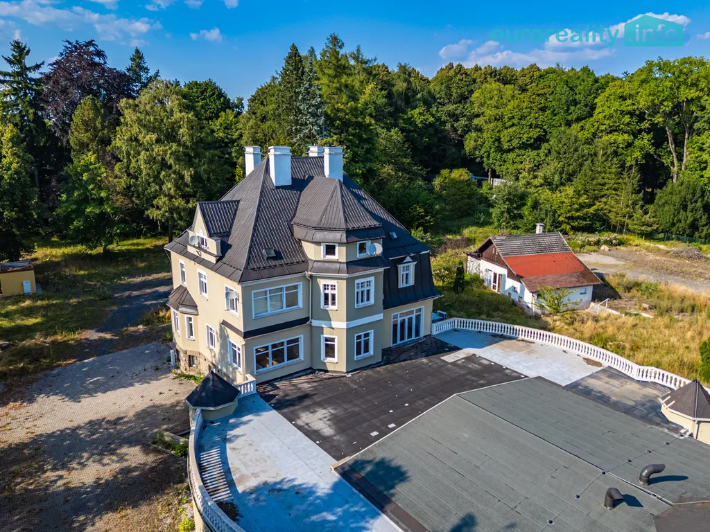 Hlavní objekt je trojpodlažní s jedním podzemním podlažím, kombinuje historickou vilu s moderní přístavbou a disponuje velkorysými prostory které jsou vhodné k široké škále využití.