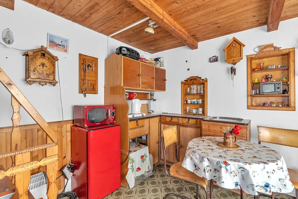 Chata je umístěna v klidné části osady. Dispozice zahrnuje jednu obytnou místnost s místem pro kuchyňku, podkrovím sloužícím jako ložnice a sklepem.