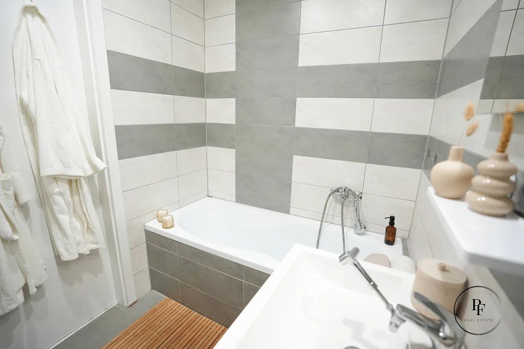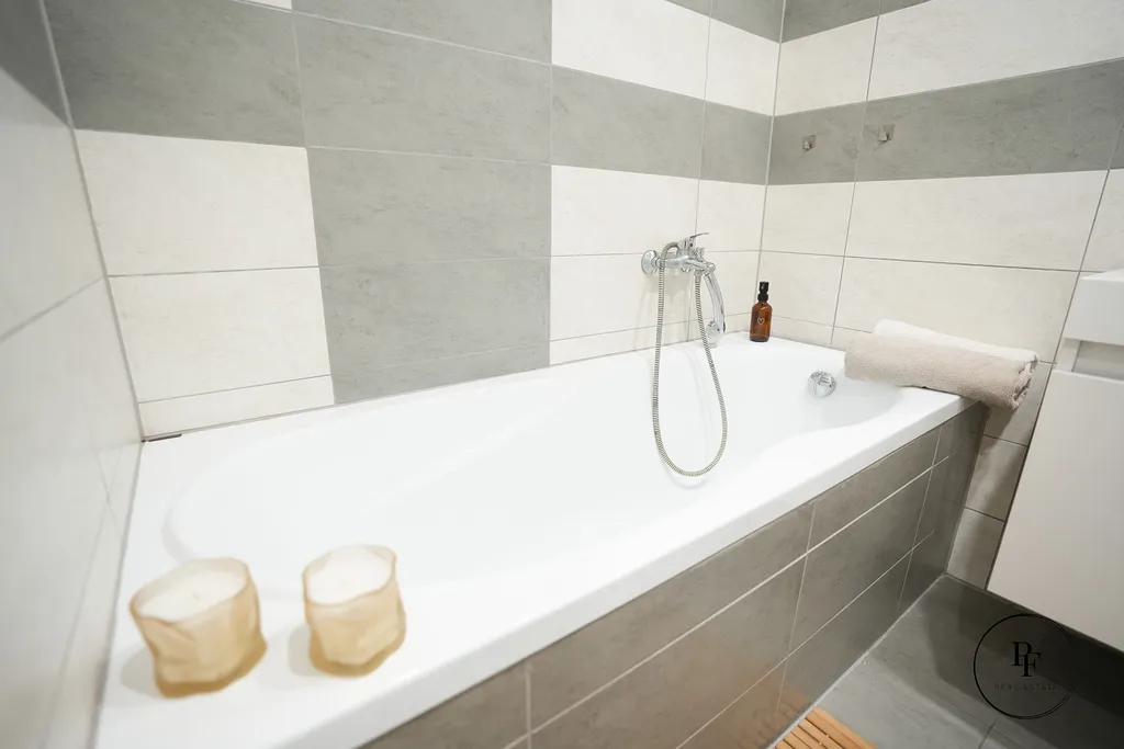 Dispozice je praktická a funkční. Za vstupními dveřmi se nachází předsíň, ze které je vstup do koupelny s vanou, na samostatnou toaletu a do obývacího pokoje.