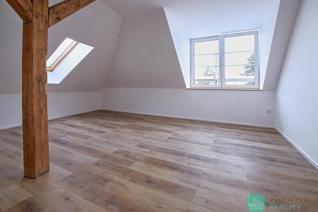 Podkrovní bytová jednotka o dispozici 3kk/75 m2 se nachází ve 3. podlaží (2. patro).