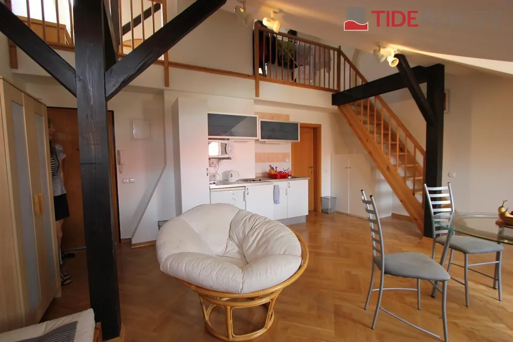 Půdní mezonetový byt 2+kk, 45 m2, po rekonstrukci v posledním ( 4.) patře secesního domu s výtahem po celkové rekonstrukci. Byt je zařízený nábytkem, v první úrovni se nachází obývací pokoj s kuchyňkou a koupelna ( sprchový kout ) s WC, druhá úroveň je otevřená ( galerie) a je zde ložnice. Byt se nachází v tiché a stále více populární části Karlína, nedaleko od stanice metra Křižíkova, nespočet kavárniček a restaurací v okolí. PENB G. Nájemné 20.000 + služby a energie ( 5000, Kč). Volný od února 2026