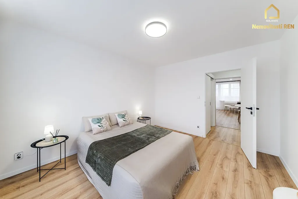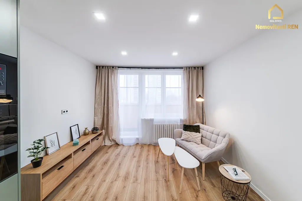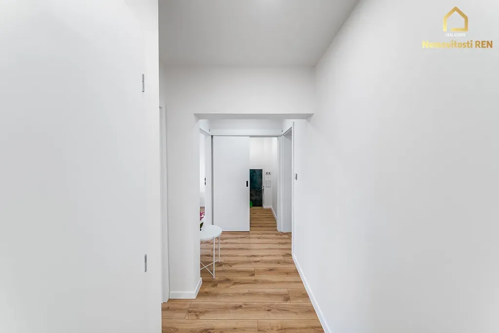 Nemovitost prošla zdařilou celkovou modernizací a je připravena k okamžitému nastěhování. Dominantou interiéru je nová kuchyňská linka v moderní zelené barvě, vybavená kvalitními spotřebiči Bosch – myčka, trouba a indukční varná deska, dále lednice, odsavač par. V celém bytě jsou položeny plovoucí podlahy, koupelna je vybavena praktickým sprchovým koutem a WC je oddělené. Velkou výhodou je také samostatná komora, která nabízí dostatek prostoru pro pračku, sušičku i další věci.