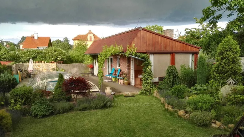Můžete využít dvě parkovací místa, z toho jedno stání je kryté se světlou výškou pro obytný přívěs nebo obytné auto. K dispozici je bazén 7x4m se zastřešením a slanou vodou, V prostorném zahradním domku je finská sauna se sprchovým koutem a příprava na kuchyňskou linku. Dále je zde oddělená technická místnost, kde je veškerá bazénová technologie včetně čerpadla. Pod jednou střechou je venkovní prostor s kachlovým sporákem. Je zde možné vbudovat letní kuchyň s jídelnou. Stěny jsou obloženy cihlou KLINGER, na střeše je položen BRAMAC. Kolem je položena teaková podlaha a dlažba.