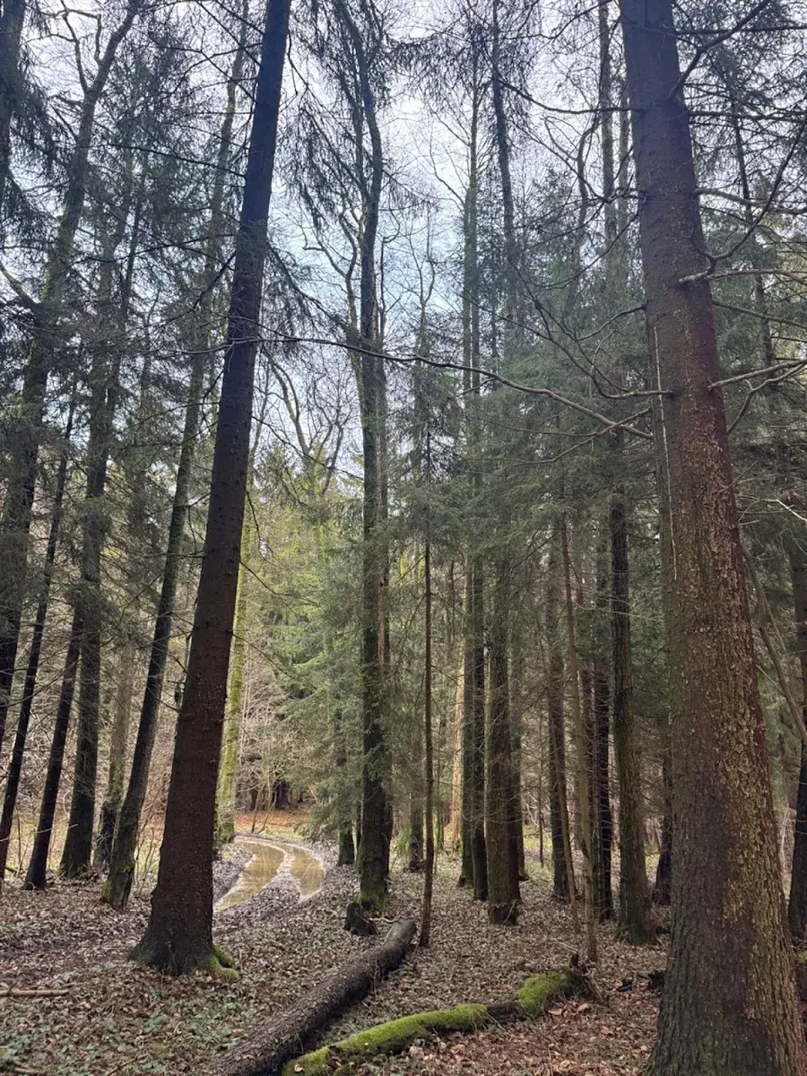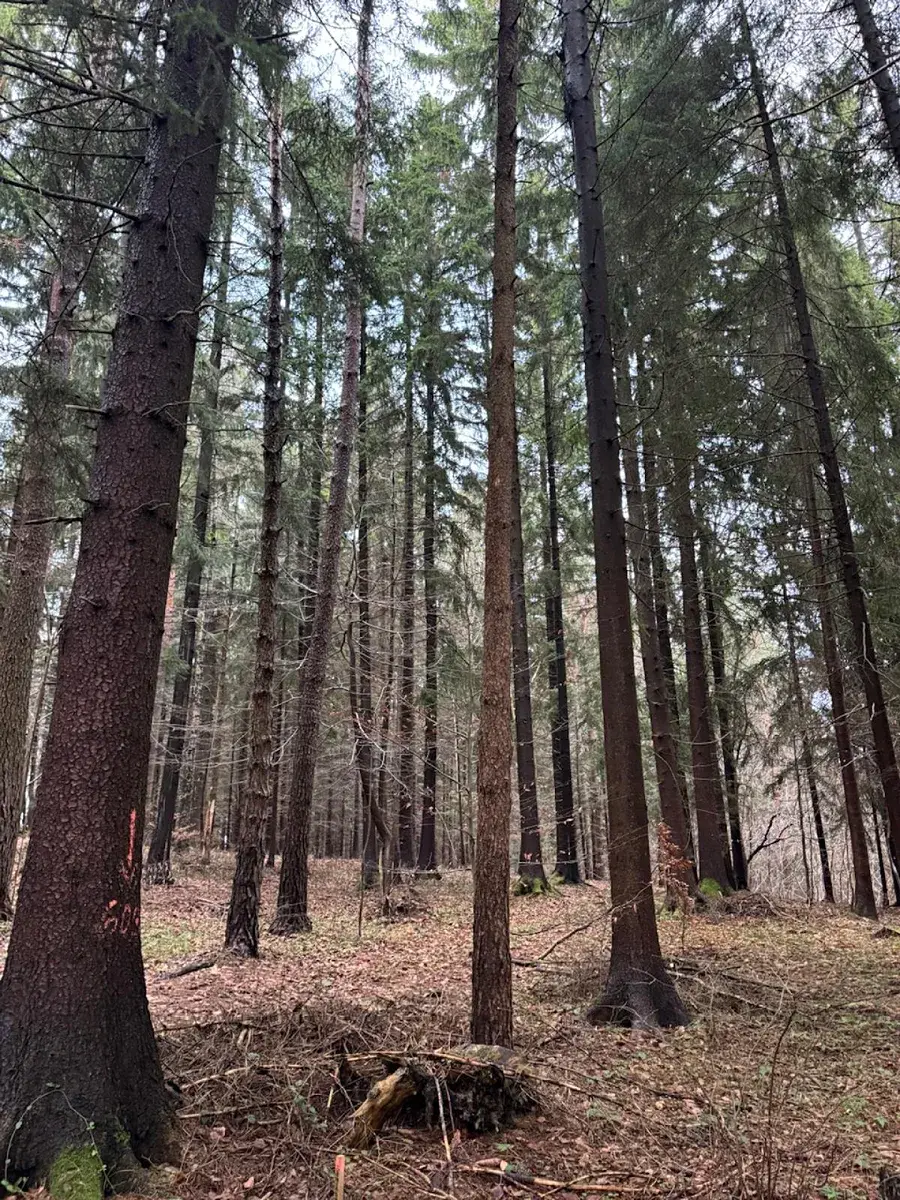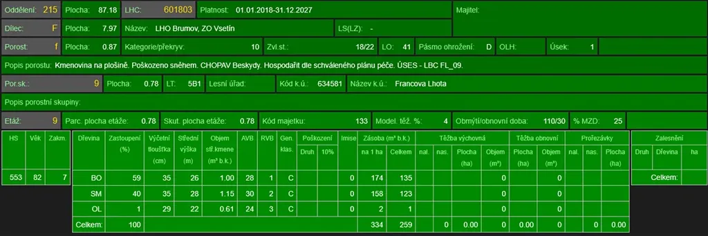 - p.č. 336 vedená jako lesní pozemek o celkové výměře 8 682 m2, z toho vlastníme podíl 2/9 tedy 1 929 m2 (stáří lesa 90 let - zastoupení dřevin borovice, smrk, olše, stáří lesa 65 let - zastoupení dřevin smrk, olše)