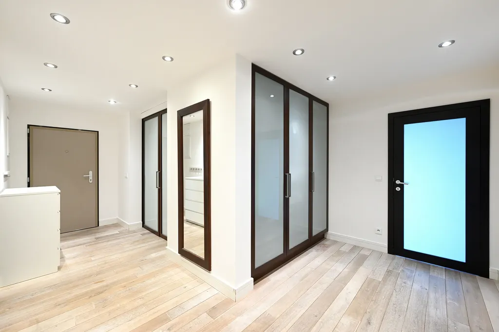 V horním patře bytu se nachází další dvě ložnice a koupelna se sprchovým koutem. Celkově tak byt disponuje čtyřmi ložnicemi, což z něj činí ideální volbu pro větší rodinu nebo pro ty, kteří pracují z domova a chtějí některý pokoj využít jako kancelář.
