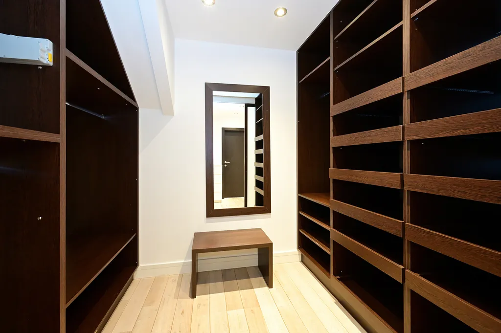 Každá obytná místnost v bytě, tedy všechny ložnice i obývací pokoj, je vybavena vlastní klimatizační jednotkou, takže máte vyřešen zásadní problém, kterým je horko během letních měsíců. V celém bytě jsou dřevěné podlahy, koupelny jsou provedeny v mramoru v matném provedení, a to jak na podlahách, tak na stěnách. Kuchyňská linka je vybavena kvalitními spotřebiči značky AEG, včetně myčky na nádobí, sklokeramické varné desky, elektrické trouby, digestoře a lednice s mrazákem.