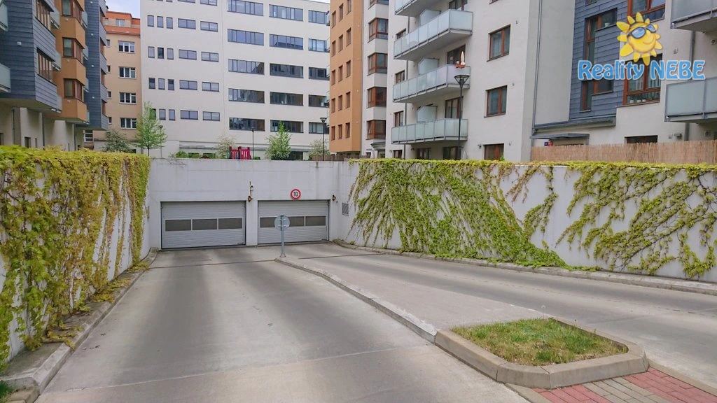 Vjezd do podzemních garáží vraty na dálkové ovládání, vhodné i pro dodávku či SUV.