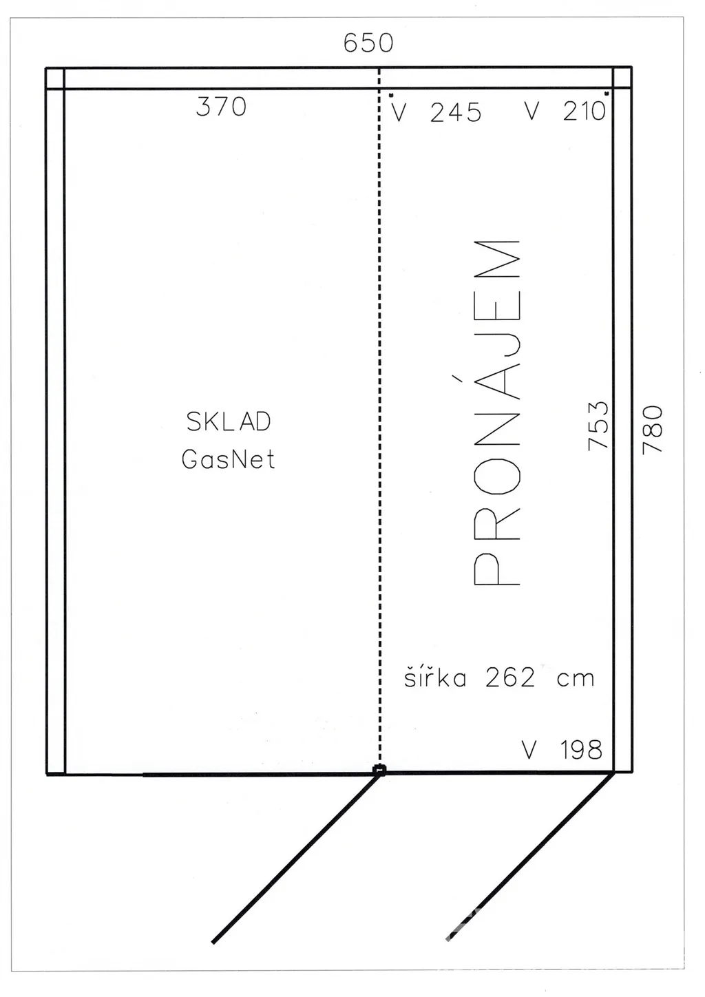 Vhodné jako sklad vybavení, nářadí, archív dokumentace, nábytek, popř. garáž.
