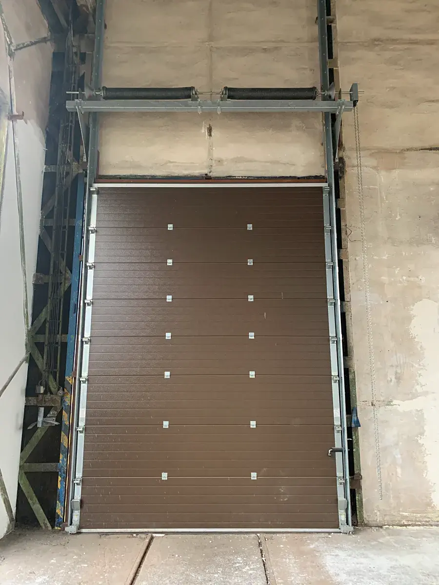 - Vjezdová sekční vrata o rozměru cca 3,5m x 4,6m. Možný vjezd nákladní dopravy do haly.