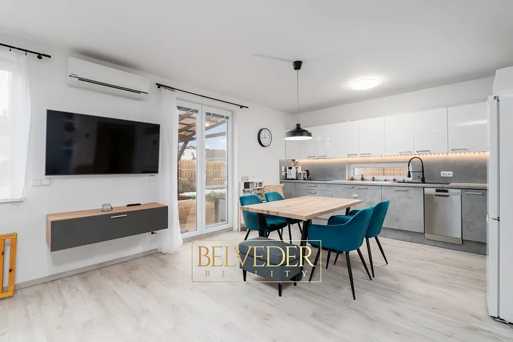 Byt má charakter řadového domku a je součástí menší novostavby se šesti bytovými jednotkami, což vytváří příjemné sousedské prostředí a klid pro každodenní rodinný život. Nabízí ideální kombinaci pohodlí rodinného domu a praktičnosti bytu – vlastní zahradu s pergolou, minimální nároky na údržbu a nízké provozní náklady, které potěší rodinný rozpočet.