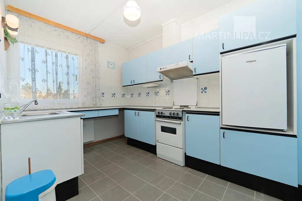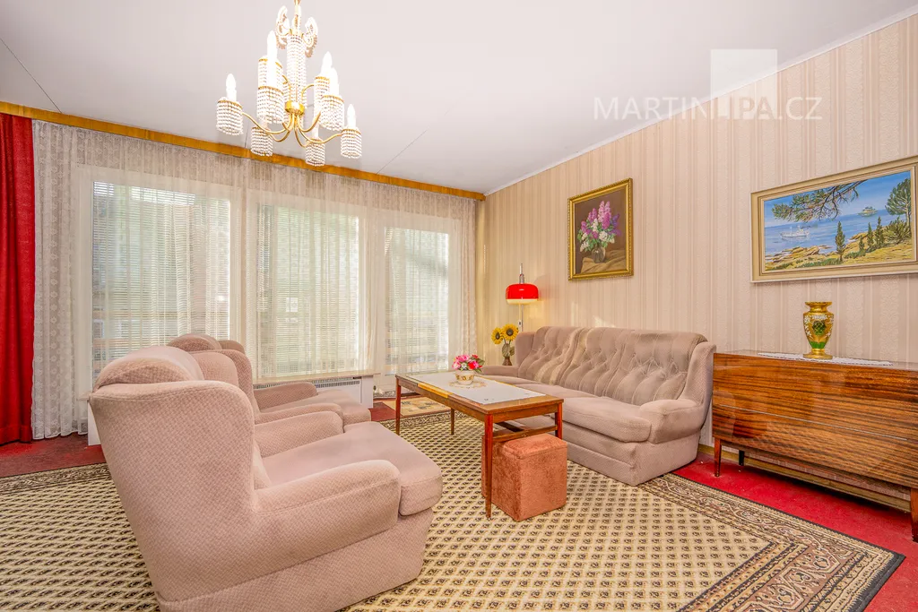 Obytná část domu má užitnou plochu 104 m² a funkční, přehlednou dispozici. Najdete zde tři ložnice, obývací pokoj a samostatnou, plně vybavenou sektorovou kuchyň, která je s obývacím pokojem propojena typickým servírovacím okénkem. Z obývacího pokoje je přímý vstup na lodžii. Všechna okna byla v roce 2006 vyměněna za plastová dvojskla.
