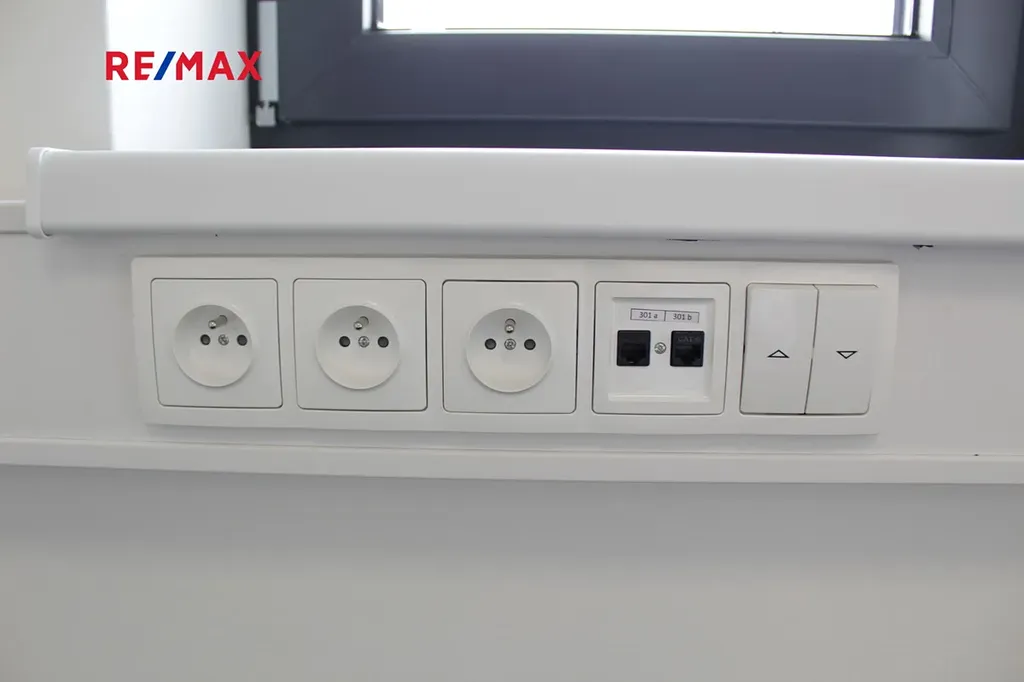 Internet si nájemník zařizuje sám. V patře (v prostorách budoucí společné kuchyňky) se nachází nová serverovna.
