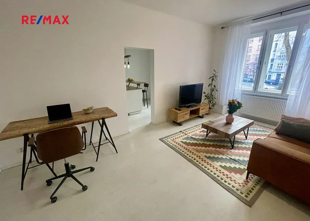 Kompletně zařízený byt 2+1 o výměře 65 m2 s lodžií a šatnou je situován na 2. nadzemním podlaží šestipodlažního cihlového bytového domu v žádané lokalitě pražských Vršovic a je orientován na jižní stranu. Vstup vede do předsíně, z ní je přístup do obývacího pokoje, který je průchozí do kuchyně i do ložnice. Dostatek úložného prostoru zajišťuje šatna, která je připojena k ložnici. Plně vybavená kuchyň (sklokeramická varná deska, el. trouba, myčka, lednice s mrazákem, mikrovlnka) umožňuje sezení u barového pultu a je z ní přístup na malou útulnou lodžii. Koupelna je vybavena vanou a pračkou, WC je samostatné. Ohřev vody zajišťuje elektrický bojler. Byt je plně vybaven nábytkem, případné odstranění menších kusů nábytku záleží na dohodě s majitelem. Vytápění elektrickým kotlem.
