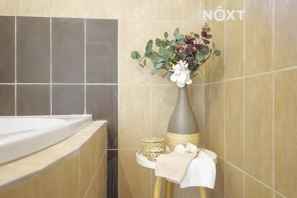Nyní si ještě můžete vybrat dekory podlah, dveří a dlažby. Koupelna je dokončena. Na vlastní náklady si zajišťujete kuchyňskou linku, nábytek, osvětlení, oplocení a terasu. Součástí projektu je také možnost výstavby garáže za příplatek stavební firmou majitele. Parkování je před domem.