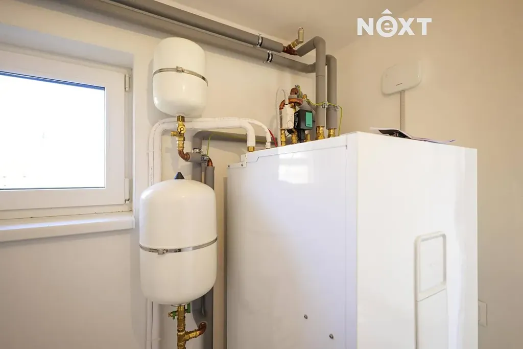 Velkoformátová okna zajišťují dostatek světla a umocňují pocit otevřenosti a lehkosti celého interiéru. Dům je navržen s důrazem na minimální provozní náklady. Vytápění je řešeno tepelným čerpadlem s možností budoucího doplnění o fotovoltaiku. Systém zároveň zajišťuje ohřev teplé užitkové vody, s případným doplňkovým ohřevem elektřinou. Inteligentní regulace otopné soustavy optimalizuje spotřebu podle aktuální potřeby a přináší maximální efektivitu (PENB B - velmi úsporný).