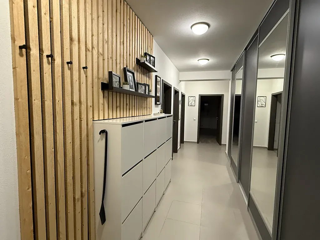 Bytová jednotka je vybavena zánovní prostornou kuchyňskou linkou s vestavěnou indukční deskou, el. troubou, mikrovlnnou troubou, digestoří, ledničkou s mrazákem a myčkou. V denních místnostech jsou laminátové plovoucí podlahy, v předsíni dlažba.
