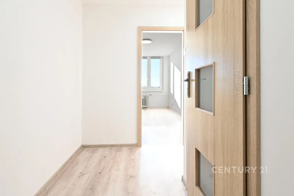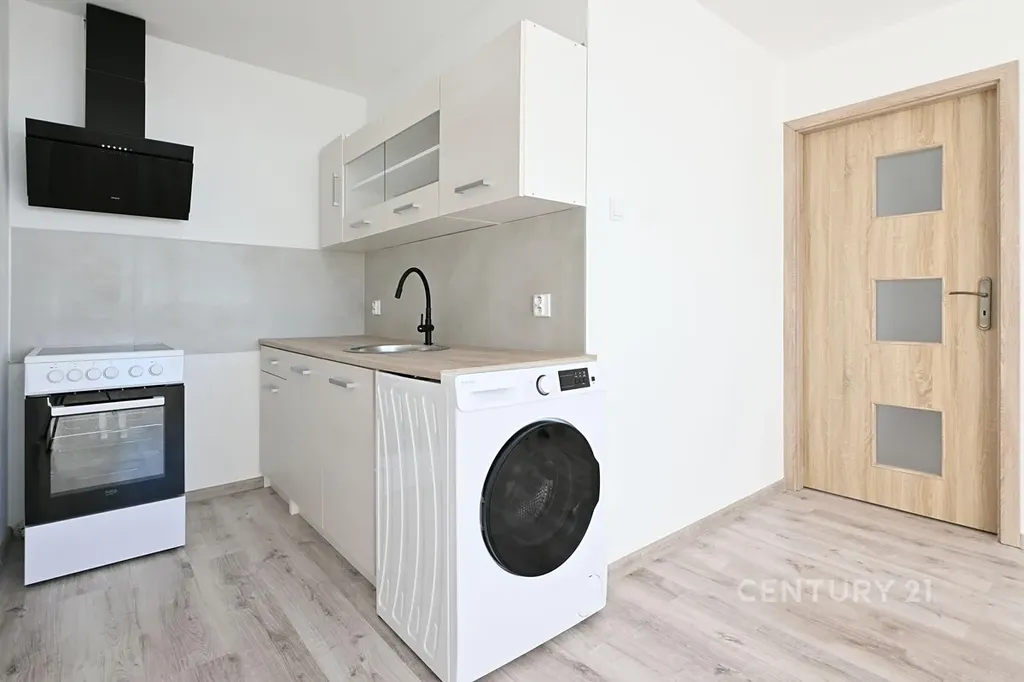 Ráda bych vám nabídla k podnájmu krásný byt po celkové rekonstrukci 2+kk o výměře 40 m² v ulici Bohuslava Vrbenského v Mostě. Byt je nově zrekonstruován a nachází se v 7. patře panelového domu. Disponuje vstupní chodbou, odkud se vchází do koupelny se sprchovým koutem, toaletou a otopným žebříkem. Koupelna je obložena velkoformátovými dlaždicemi. Z chodby se dostaneme i do samostatného pokoje. Vedle této místnosti se nachází obývací prostor s kuchyňským koutem. Kuchyňská linka je vybavená elektrickým sporákem, digestoří a pračkou.