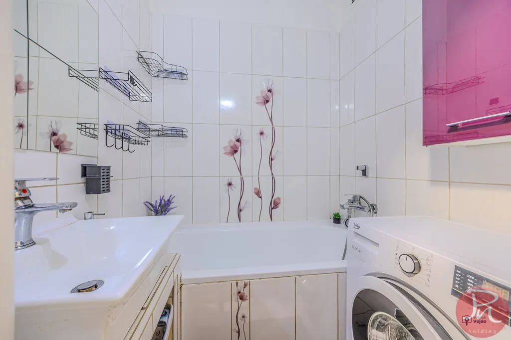 Byt má praktickou dispozici se dvěma samostatnými pokoji, oddělenou kuchyní, koupelnou s vanou, samostatnou toaletou a prostornou vstupní chodbou s dostatkem místa pro úložné řešení. Díky svému uspořádání je byt světlý, vzdušný a působí velmi příjemným dojmem.