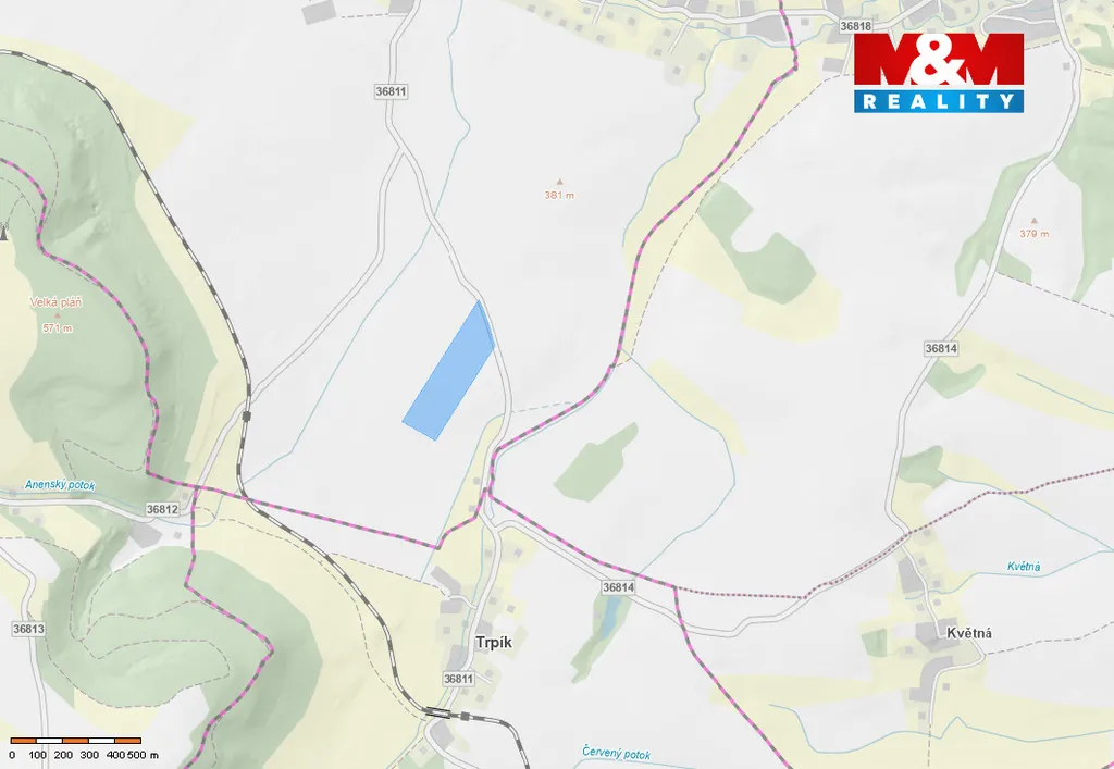 Prodej pozemku vedeného jako orná půda v katastru obce Damníkov. Celková plocha je 72 416 m². Obecní přístupová cesta. V současné době je pozemek propachtován. Zajímavá investice.
