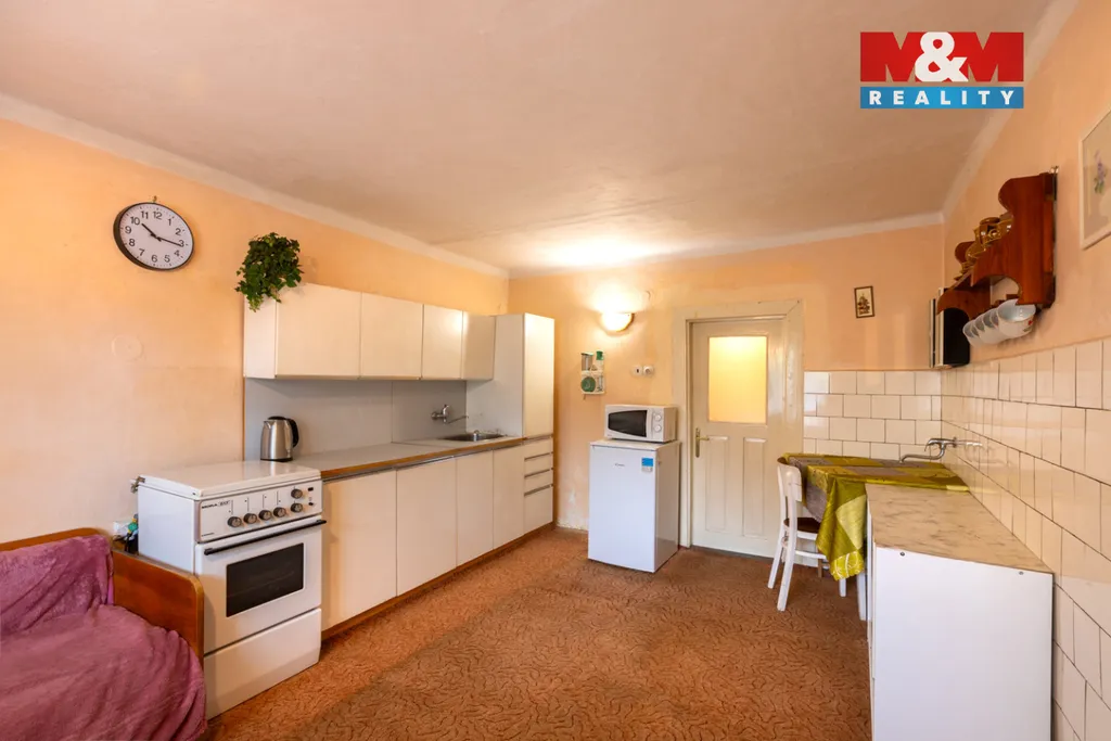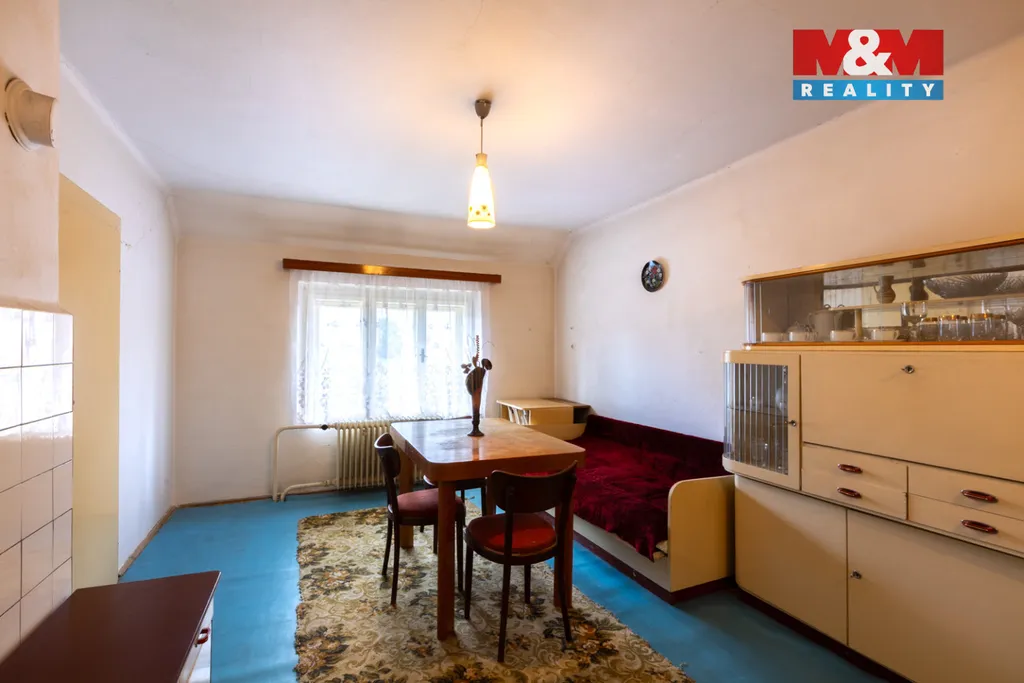 Nabízíme k prodeji rodinný dům v obci Domoušice, okres Louny. Nemovitost je určena k rekonstrukci, částečně již proběhly úpravy – v přízemí jsou plastová okna a dům je vytápěn tepelným čerpadlem. Dispozice tvoří dvě bytové jednotky 2+1 – v přízemí i v patře se nachází kuchyň a dva pokoje, koupelna je pouze v přízemí. Mimo obytný prostor je také technická místnost, dále je zde stodola a další přístavky. Po úpravě nádvoří se tento prostor nabízí pro vybudování bazénu a pergoly pro odpočinek. K domu náleží samostatný pozemek o výměře 400 m², vzdálený asi 100 metrů, který dříve sloužil jako zahrada pro pěstování plodin. V obci je veškerá občanská vybavenost – obchod, školka, škola, kino i hospůdka. Aktivní společenský život zajišťuje místní Sokol a dobrovolný hasičský sbor. V lokalitě Podžbánsko s krásnou přírodou najdete přírodní a historické zajímavosti – např. zříceninu hradu Pravda, vrch Džbán nebo Kounovské kamenné řady. Pro prohlídku nás neváhejte kontaktovat.