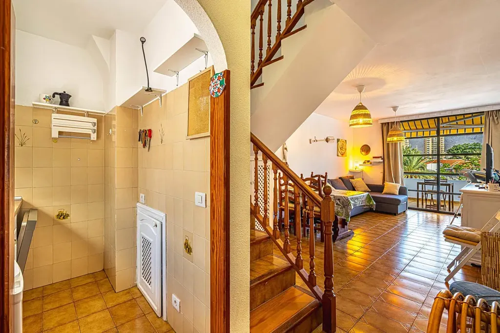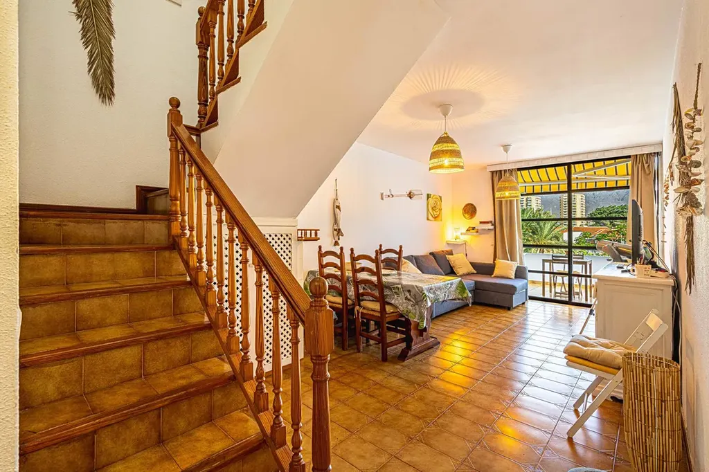 Nabízíme ke koupi útulný duplexový penthouse o celkové ploše 74 m² (66 m² užitné) v exkluzivním komplexu Colón 1, jen 200 metrů od oceánu v centru Playa de las Américas. Tento apartmán je ideální volbou jak pro trvalé bydlení, tak pro investici do krátkodobých pronájmů a spojuje pohodlí, slunce a výbornou dostupnost všech služeb. Nemovitost se nachází ve 2. patře a ačkoli komplex nemá výtah, poskytuje světlé a příjemné prostředí s orientací na jih, což zajišťuje dostatek denního světla. Apartmán disponuje jednou ložnicí s vestavěnými skříněmi, moderní koupelnou, prostorným obývacím pokojem s jídelním koutem a slunnou terasou s nádherným výhledem. Colón 1 nabízí prostorné společné bazény, upravené komunitní zahrady a klidnou atmosféru uprostřed živého centra, kde najdete množství restaurací, obchodů a zábavy, stejně jako snadno dostupnou veřejnou dopravu. Apartmán se prodává plně vybavený a je připraven k okamžitému nastěhování.