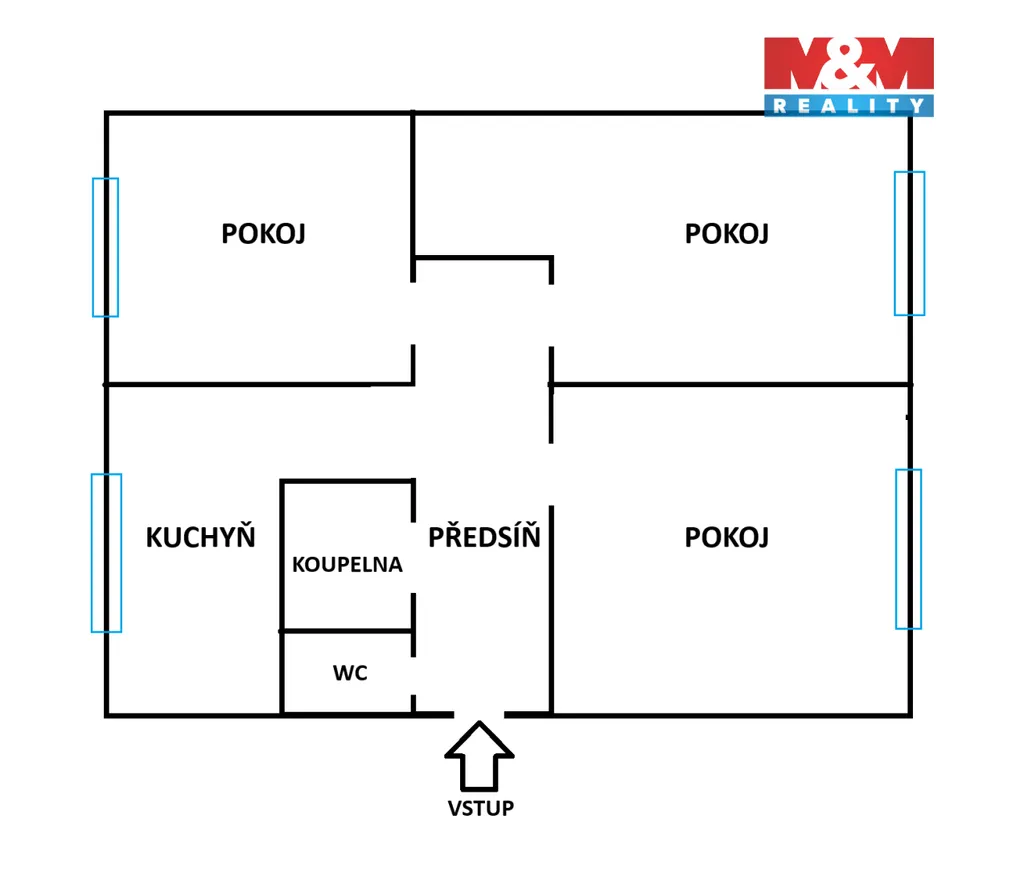 Byt disponuje třemi neprůchozími pokoji, což zajišťuje dostatek soukromí a komfortní bydlení pro rodinu i vícečlennou domácnost. Dominantou bytu je nová, moderní kuchyně vybavená vestavěnými spotřebiči, které jsou zcela nové a dosud nepoužívané – myčka nádobí, trouba, indukční varná deska i lednice.