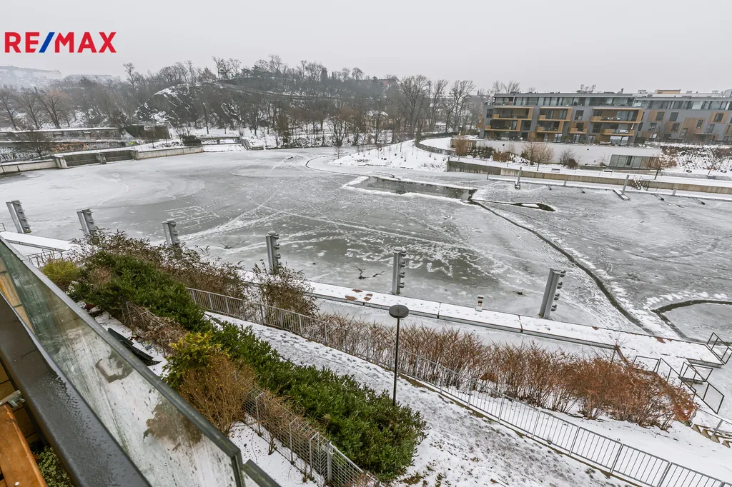Byt ve 3. patře o podlahové ploše cca 96 m² disponuje prostornou terasou o velikosti 23 m², která přirozeně rozšiřuje obytný prostor a nabízí ideální místo pro relaxaci v klidném prostředí u vody.