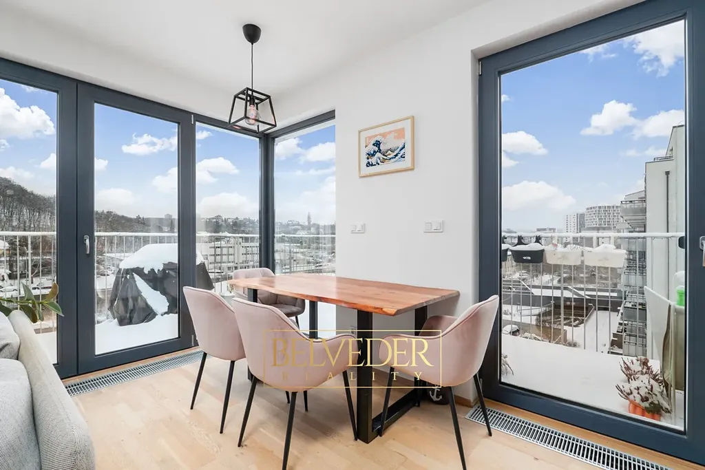 Byt o dispozici 2+kk se nachází v 5. nadzemním podlaží novostavby (celkem 6 podlaží). Nabízí 53,3 m² obytné plochy, prostornou terasu 23,8 m², sklep 3,1 m² a garážové stání v podzemních parkovacích prostorech. Poslední podlaží má pouze dva byty, terasa je bez zastřešení a poskytuje výjimečný pocit otevřenosti a soukromí.