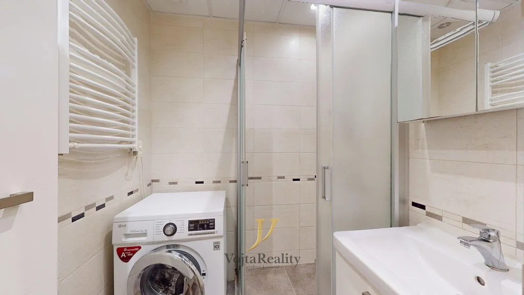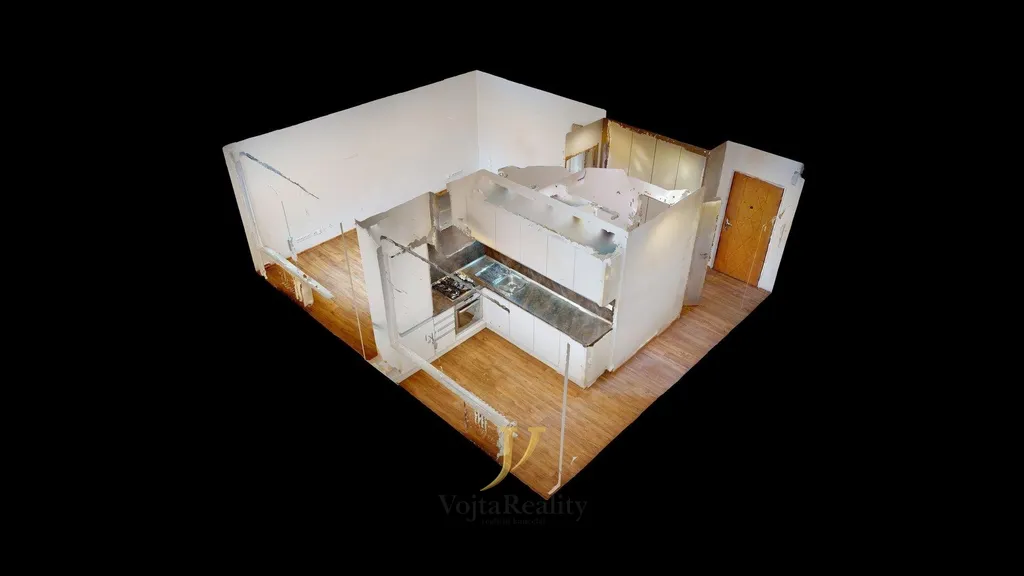 Byt, který byl zrekonstruován v roce 2018 se nachází ve 2. NP (1.patro) a je situován do klidného vnitrobloku. Dispozice bytu nabízí vstupní předsíň, která obepíná zděné bytové jádro, kdy z předsíně vpravo se nachází hlavní obytná místnost, následně z předsíň ústí do kuchyně. Kuchyň je vybavena vestavěnými spotřebiči a policovými skříněmi. Koupelna disponuje vestavěným sprchovým koutem, WC se nachází v oddělené místnosti.