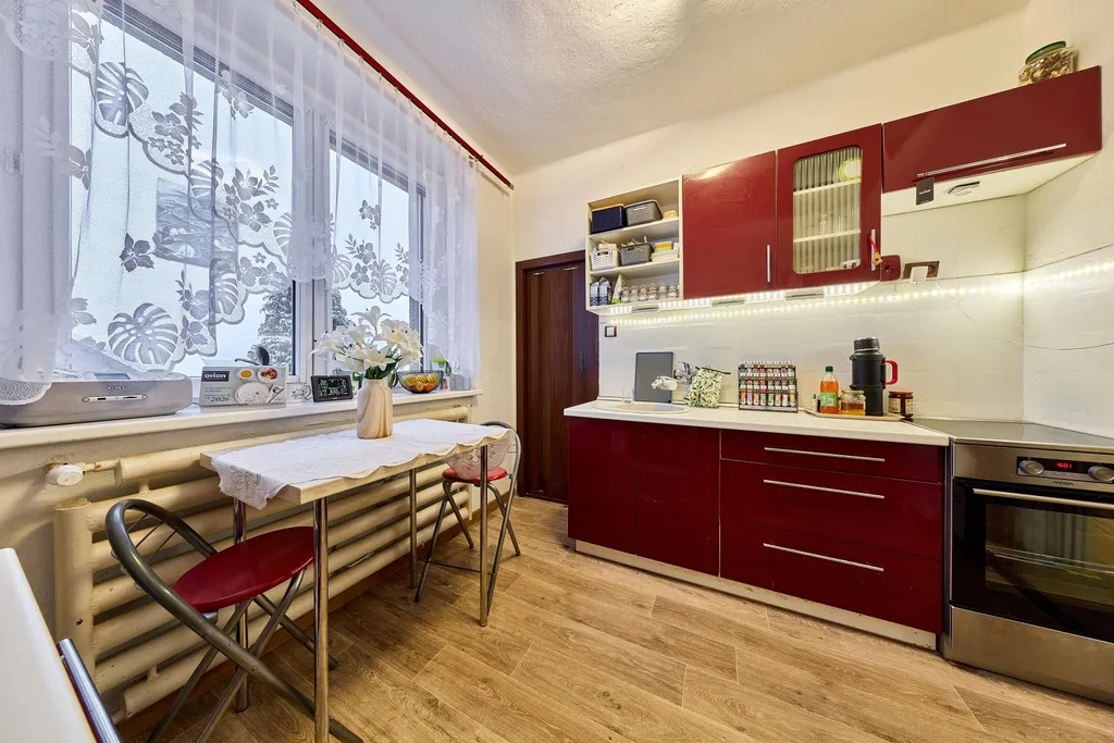 Nabízíme Vám prostorný byt o dispozici 3+1 s balkonem, který je v osobním vlastnictví a výměra jeho podlahové plochy s příslušenstvím činí 96 m2. Byt je umístěn ve 3. podlaží zděného domu bez výtahu, a to v klidné ulici Benešova v Trutnově - Poříčí.