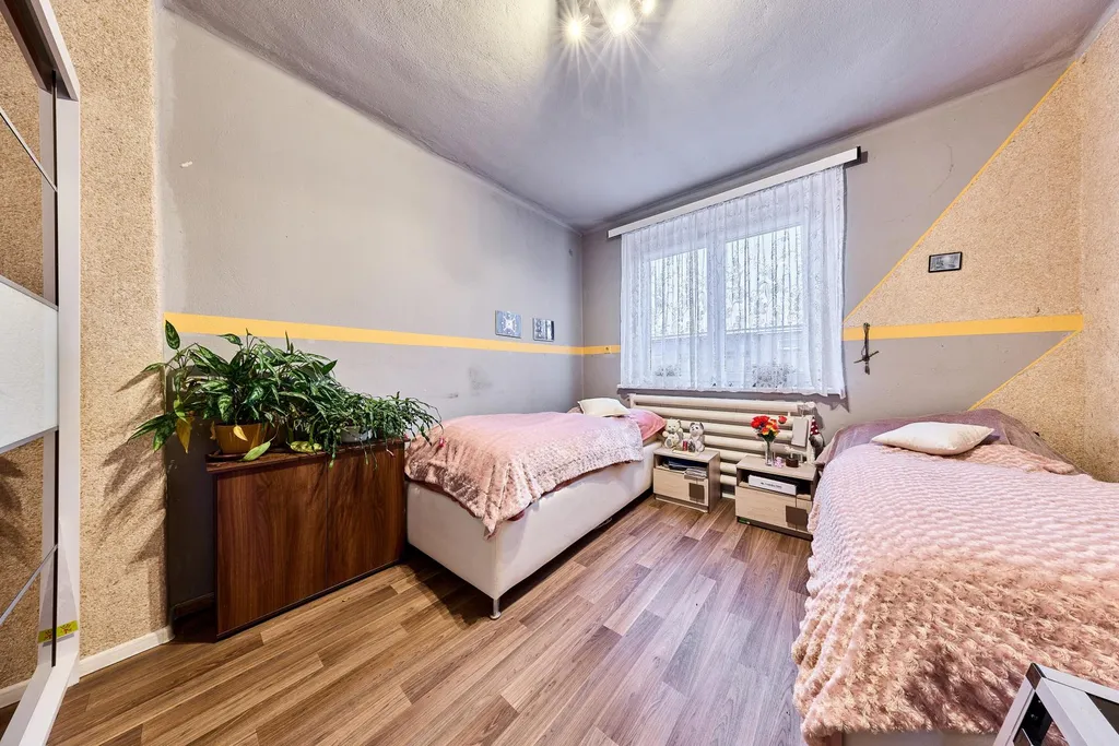 Dispozice bytu: chodba 6,72 m2, koupelna 2,62 m2, toaleta 0,91 m2, spíž 0,92 m2, obývací pokoj 23,16 m2, kuchyně 7,81 m2, ložnice 12,87 m2, pokoj 12,22 m2. Vstupní chodba je prostorná, s moderními vestavěnými skříněmi, koupelna má sprchový kout, umyvadlo, zrcadlo a je s prostorem pro pračku. Toaleta je samostatná a s oknem. Samozřejmě nechybí plastová okna, která mají výborné termoizolační vlastnosti a zabraňují ztrátám tepla. Byt se prodává částečně vybavený, bez elektrospotřebičů. Vytápění i ohřev vody je zajišťováno dálkově. Energetický štítek bude dodán, prozatím uvádíme třídu G.
