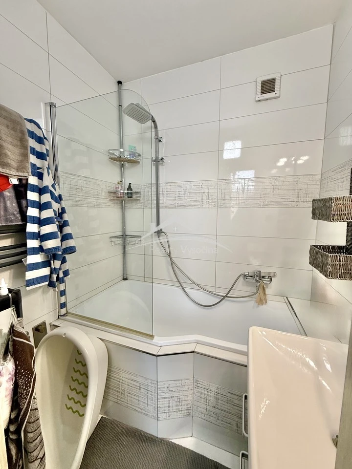 Koupelna je vkusně zrekonstruovaná, vybavena vanou, přičemž WC je řešeno samostatně. Velkým benefitem bytu je prostorný balkón, ideální pro posezení či relax.