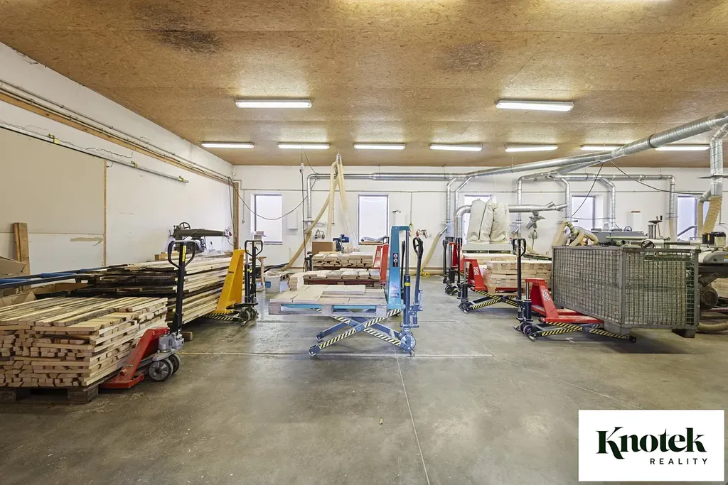 - SAMOSTATNÁ HALA s užitnou plochou 178,32 m2. Hala má samostatný vstup a také posuvná vrata s možností vjezdu nákladního auta (sv. v. 3,8 m). V současnosti je hala využívaná jako truhlářská dílna.