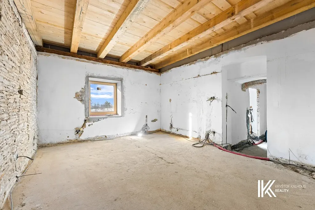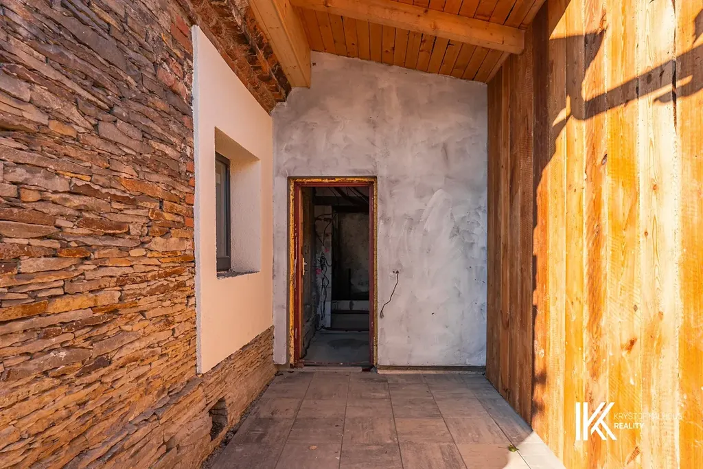 Na původní konstrukci domu byla zahájena rozsáhlá rekonstrukce. Hotové jsou nové krovy, střecha, štíty, betonové podlahy s hydroizolacemi, nová elektroinstalace s přípravou na fotovoltaiku či tepelné čerpadlo a dřevěná okna. Vnitřek čeká na dokončení novým majitelem, který si zvolí dispozici, technologie i finální podobu interiéru podle sebe.