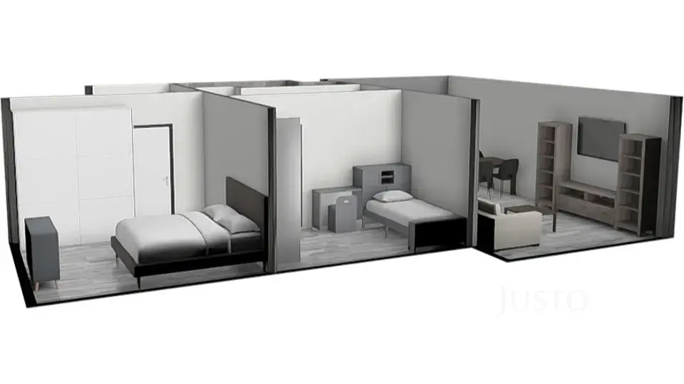 Byt má výměru cca 60 m², je bez balkonu (s perspektivou do budoucna – viz níže) a nachází se v domě s výtahem.