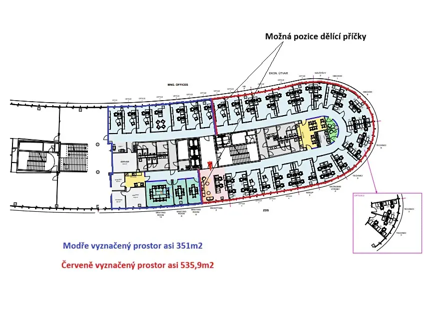 5. patro, kanceláře 887 m2 (lze rozdělit na 351 m2 a 540 m2) (RM)