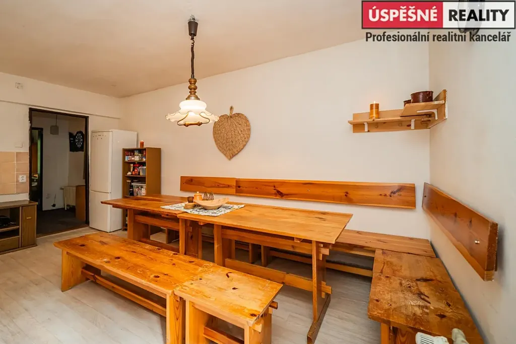 Dřevěná chata s kamennou podezdívkou o dispozici 5+1, stojí na jižním svahu nejvyšší hory Krušných hor Klínovci, nad klidnou obci Suchá u Jáchymova. Dispozice: 1.NP: Zasazen do svahu garáž nyní využívána jako dílna, technická místnost, kotelna 2.NP Vstupní veranda, chodba, obývací pokoj, kuchyň s jídelnou, spíž, WC a koupelna. 3.NP 4x ložnice. 4.NP Půda, z části zateplená.