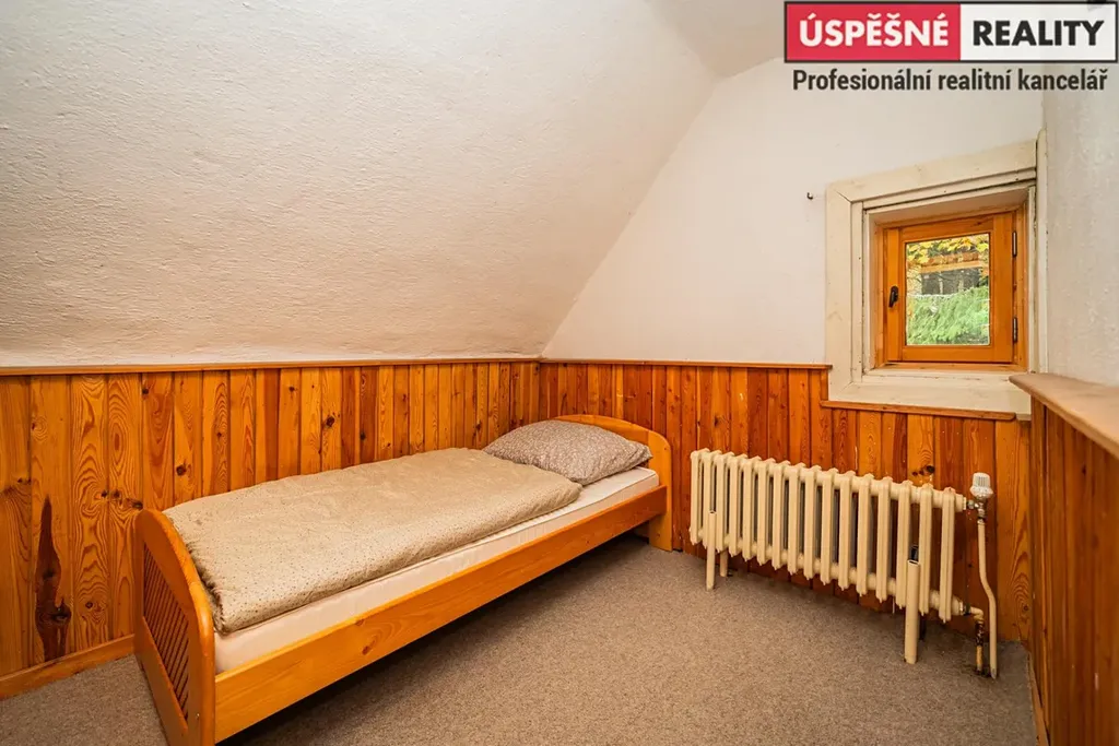 V exkluzivním zastoupení majitele Vám zprostředkujeme koupi prostorné chaty s vlastním pozemkem o rozloze 733 m2 v obci Jáchymov, část obce Suchá. Takzvaný lovecký zámeček z Doupova je bývalá dřevěná hájenka z Doupovských lesů který v 70. let byl zasazen do lesů Krušných hor jako chata pro účely rodinné rekreace.