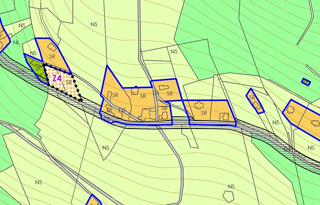 Dle územního plánu se jedná o plochy „SR – smíšené obytné rekreační“. Na pozemku je