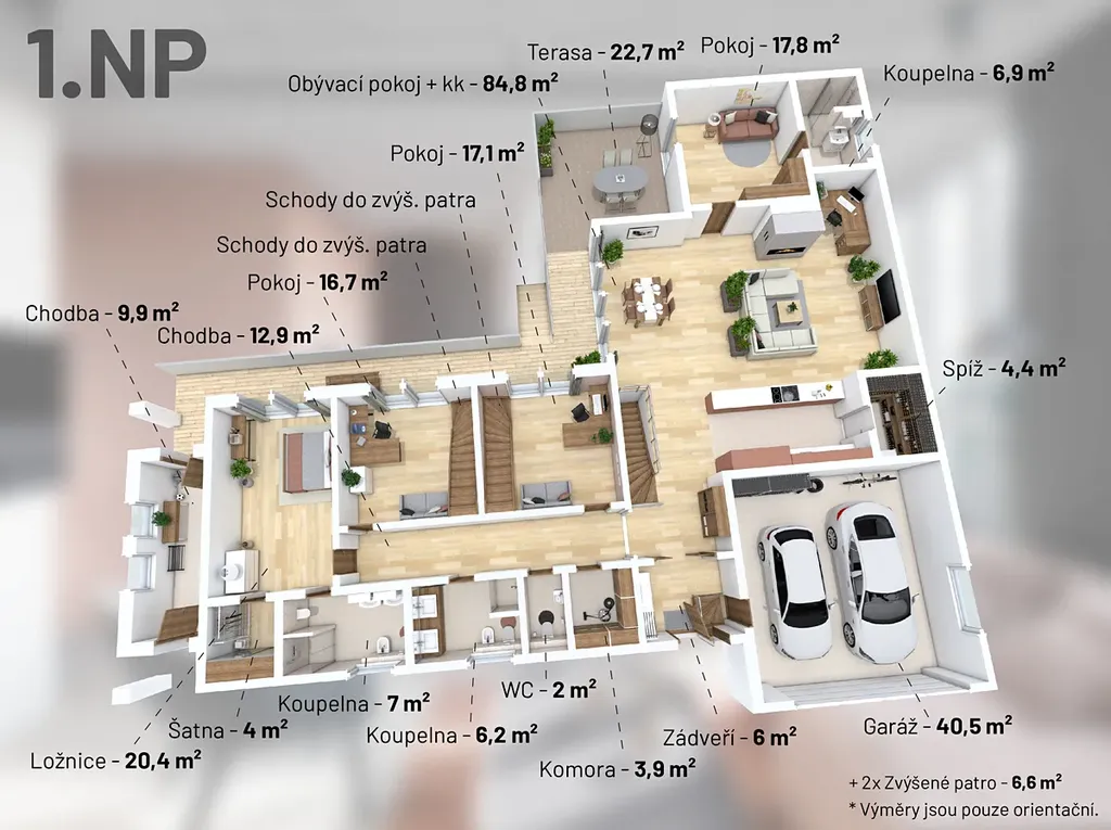 • dispozice: 5+kk, 4 ložnice, 3 koupelny