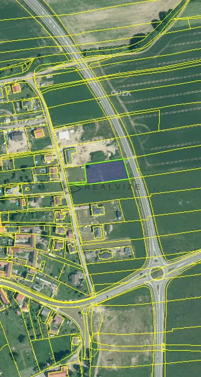 Část pozemku - 106 m2 je určen jako příjezd (zakresleno na fotografii), zbylý pozemek o rozloze 2.168 m2 je krásný prostor pro dům.