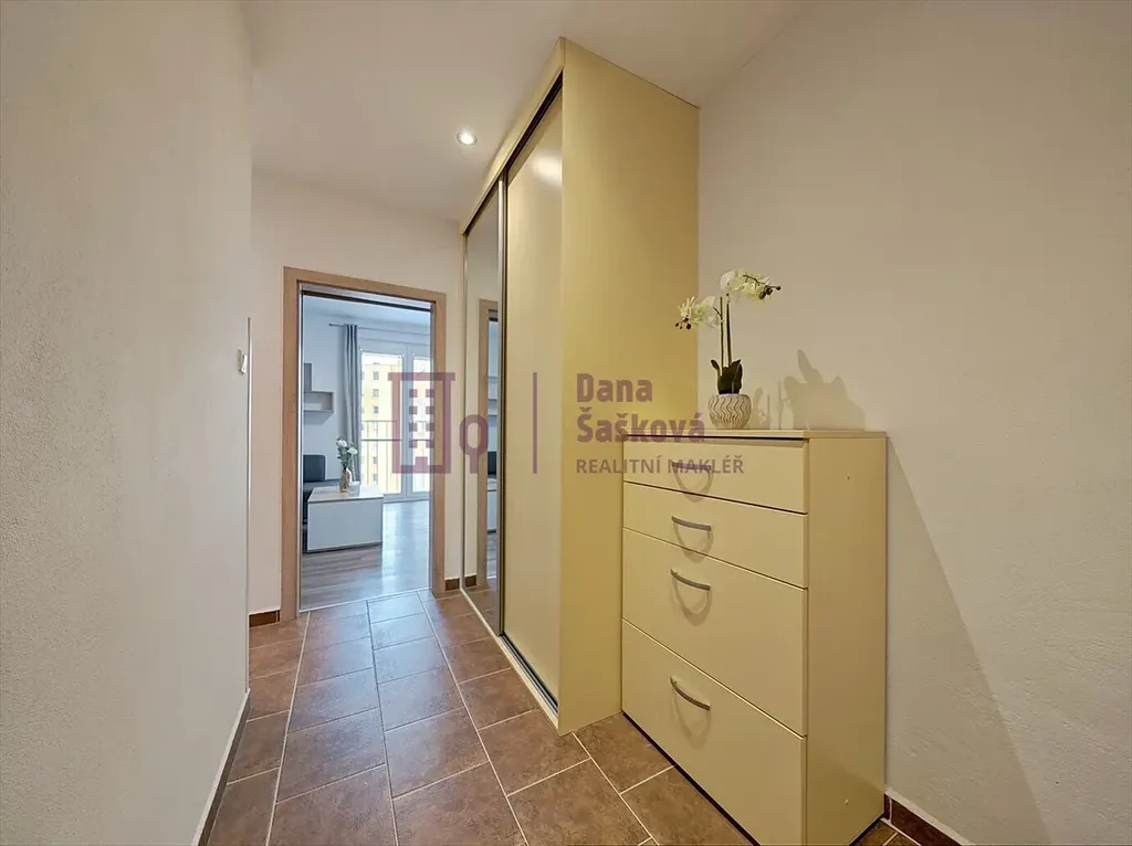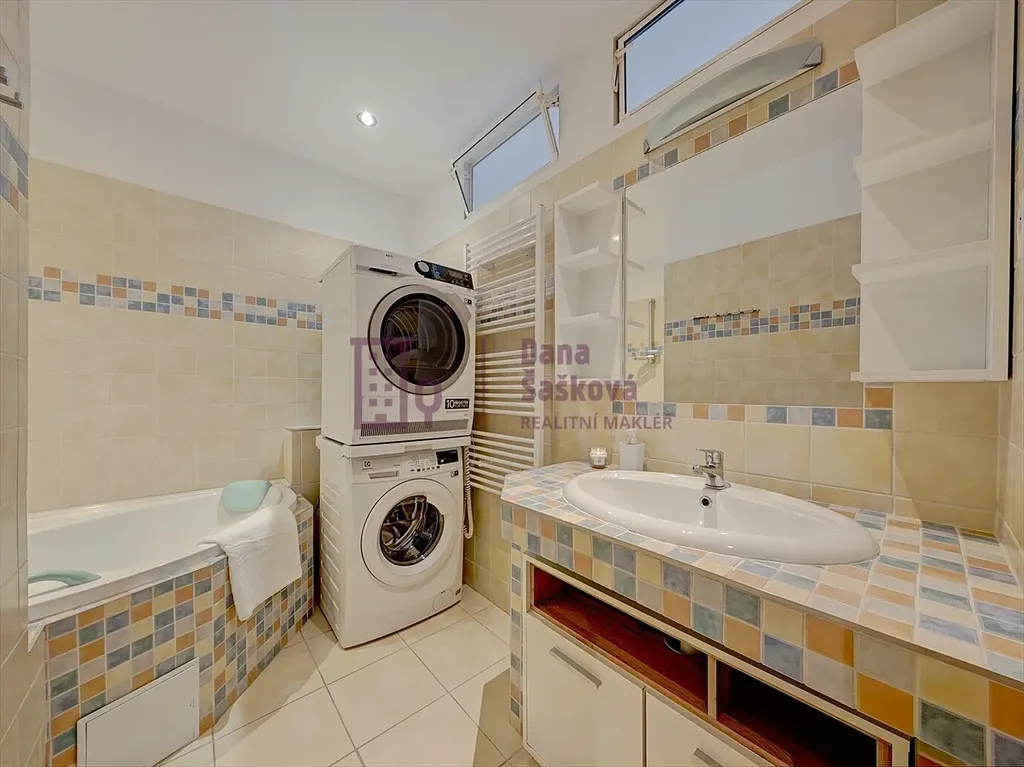 Byt je kompletně vybavený veškerým potřebným nábytkem, kuchyňskými spotřebiči, pračkou i sušičkou.